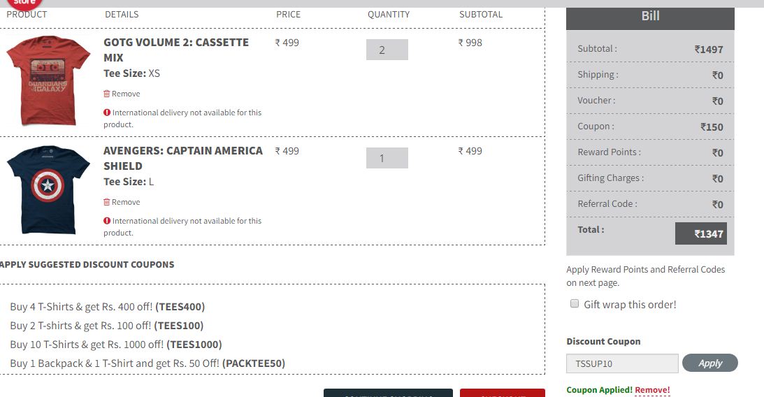 Shopping Online Coupons Codes, Offers - WooCoupons Coupons, Promo Codes & Offers for Online Shopping in India. Get Best Discount offers & Deals for Aug 2022 at WooCoupons. ... (App Only + New Users) View All NearBuy Offers. FLAT 15% OFF. IGP Coupon - Flat 15% Off on ALL Purchases (SiteWide Offer) ... Get Women T-shirt At Souled Store View All The Souled Store Offers. First Purchase. The Souled Store Coupon & Promo codes - CouponsPlusDeals.com The Souled Store Coupon & Promo codes Coupons Plus Deals has a source of coupons and deals provided by users and visitors daily. We target at building a must-visit website for consumers. Therefore, we have these coupons checked as soon as possible. The Souled Store - Online Shopping for Men & Women Clothing ... Shop for t-shirts, joggers, backpacks for men and women online at The Souled Store - the one-stop destination for all official merchandise of superheroes and movies. WOMEN ; MEN ; Track Order Contact Us Download App HomeGrown Indian Brand. Over 4 ... New Arrivals. Best Sellers. Activewear. Tie-Dye. Hottest Deals. Streetwear. Footwear. Shop by ...