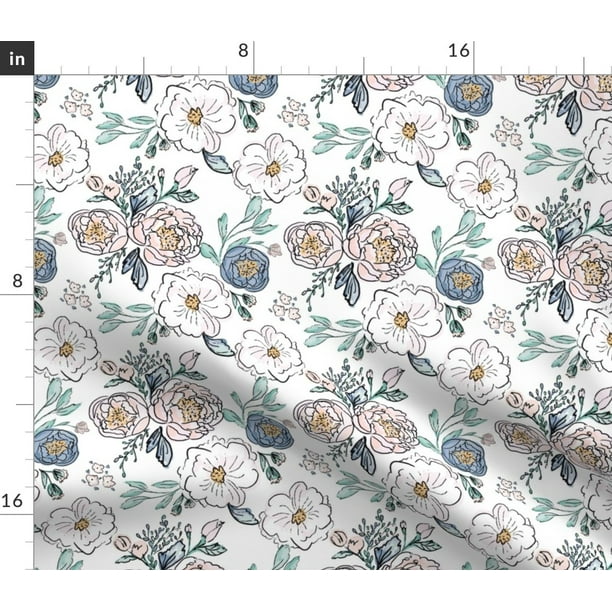 Spoonflower Fabric - Bloom Periwinkle Rose Floral Nursery Printed on Petal Signature Cotton Fabric by the Yard - Sewing Quilting Apparel Crafts Decor