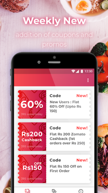 18 Zomato Coupons & Offers : 60% OFF + UPTO ₹500 OFF | Nov 2022 18 Zomato Promo Codes & Coupon Codes for November 2022 20% Off 20% Off upto Rs. 50 on Food Orders Get 20% Discount on select restaurant on Zomato. Maximum applicable discount - Rs. 50. Minimum Order value - Rs. 149. Order now! Show More Last Verified 33 minutes ago 2025 people used GET COUPON TRYNEW Free Delivery Zomato Coupons: 60%Off Promo Code - Sep 2022 | India.com Get Rs.75 Cashback On Your Order With Zomato More Details > Get code COUPON CODE 25% Off Flat 25% Off On Your Order Get code COUPON CODE 50% Off Use Code & Get 50% Off On Your Order... Zomato Coupons - Get 60% OFF on Food Order + Extra 10% Discount - ThePromoX ThePromoX Exclusive Zomato Coupon Code & offers - Flat 60% OFF Coupon Code + Flat 50 Discount on First 5 Orders | Get Extra Rs 75 Zomato Credits on Food Ordering through Zomato. Search. ... Zomato Online Order - Using this exclusive Coupon Code you can Save 50% OFF on Food ... Read More. GET CODE ST50. 0; exclusive;